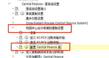 点击'财政管帐',睁开子项,点击‘重置Central Finance表’