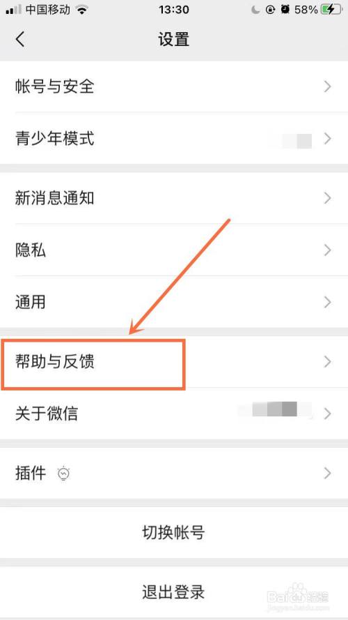 在设置界面,点击【帮忙与反馈】。