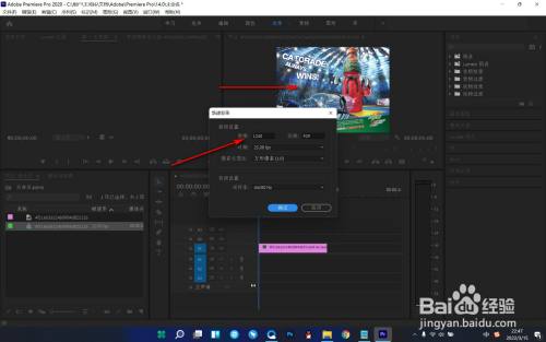 3.然后就会弹出新建彩条的面板,宽度和高度是与视频的巨细一致的,这个不需要改变。
