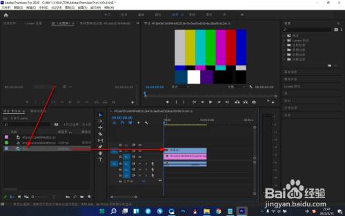 4.直接点击确定后,这个时辰就会在项目面板中呈现彩条的视频素材了,然后将其拖拽到轨道上。