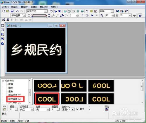 点击对象特效,选择部件扭转,添加一种扭转样式;