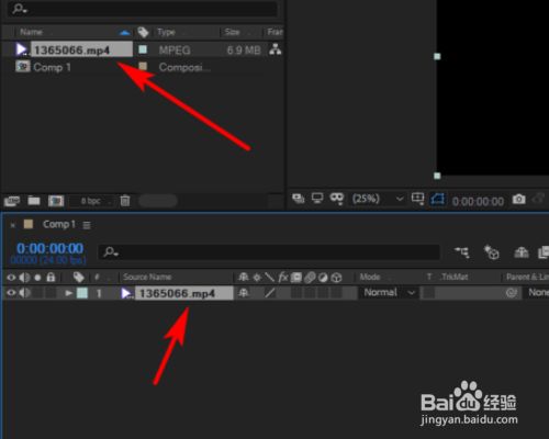 合当作新建了今后,把视频文件从上方拖动到下方的图层区域。