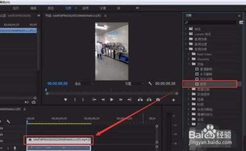 先将premiere左下角的视频素材用鼠标拉着标的目的右拖动到编纂区里。