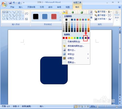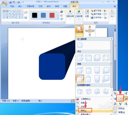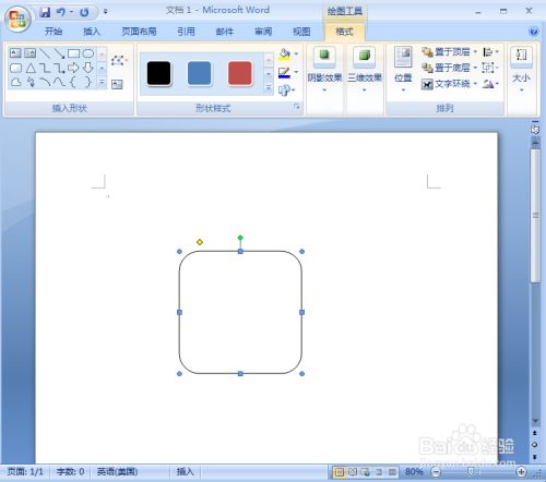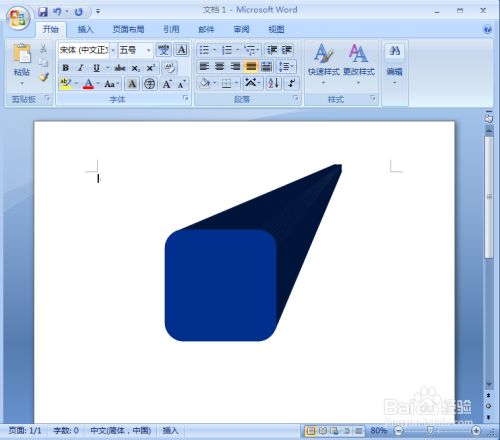 我们就在word中给圆角正方形添加上了蓝色三维结果。