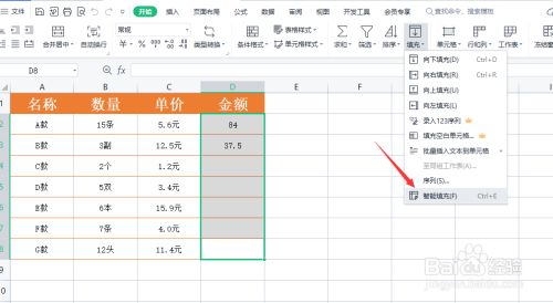 然后我们直接选中响应的方针单位格区域,操纵智能填充功能就可以完当作其他数据的主动填充及计较操作。