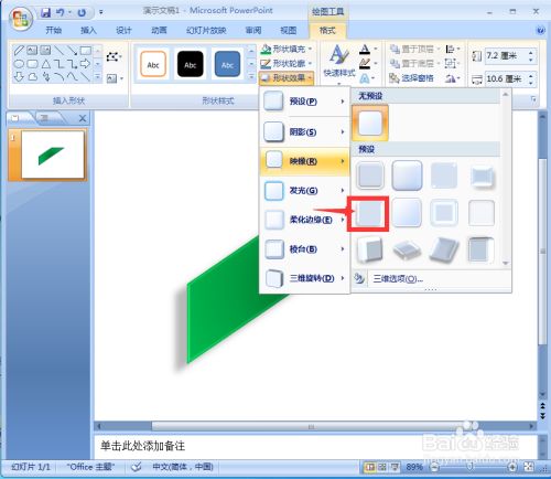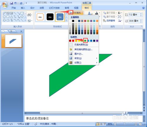 我们就在ppt中给斜纹添加上了绿色渐变和预设结果。