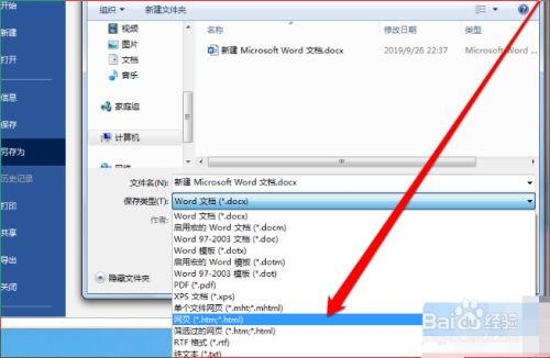 进入另存为的页面后,我们选择另存为HTML格局的文件。