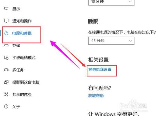 在【电源和睡眠】界面中,找到并进入【其他电源设置】。
