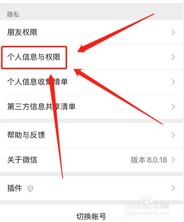 选择点击小我信息与权限功能。