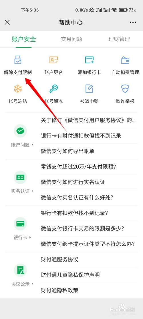 点击解除支付限制的选项。