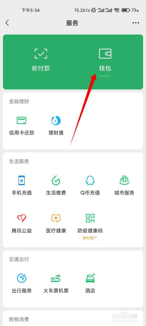 来到办事页面,点击钱包的选项。