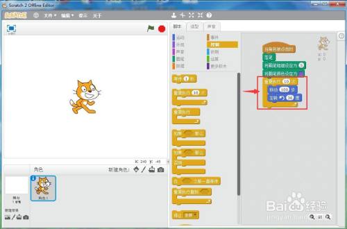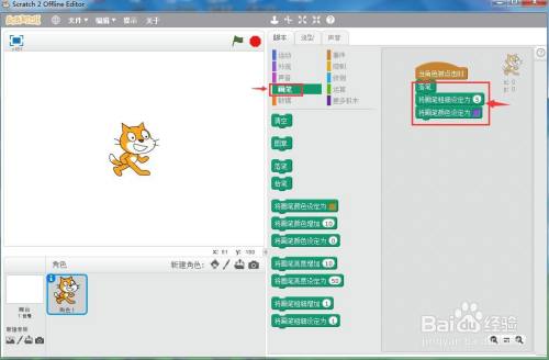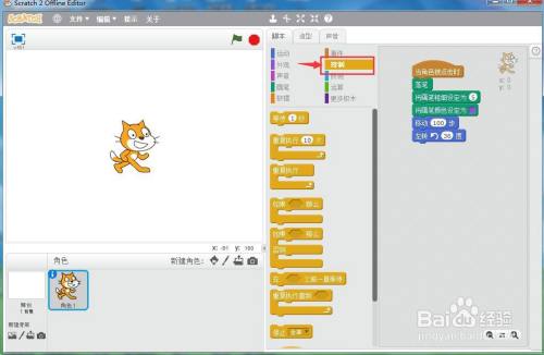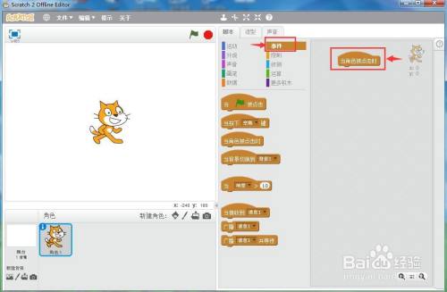 打开scratch2.0,进入其本家儿界面中;