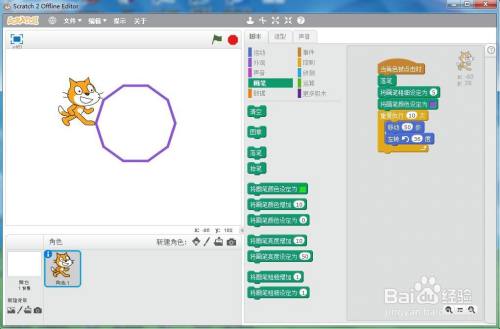 点击小猫执行程序,小猫就为我们画出了一个紫色十边形。