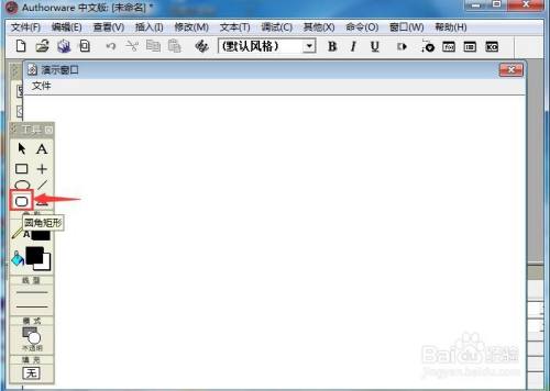 按下鼠标左键不放,在演示窗口拖动鼠标,画出一个圆角矩形;