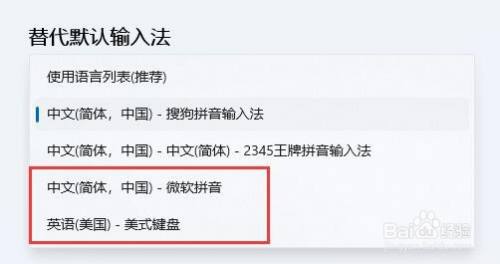 6、若是上方替代默认输入法利用的是第三方输入法,最好切换到微软自带的输入法即可