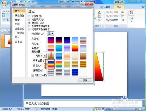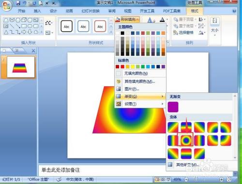 我们就在powerpoint中给梯形填充上了彩虹渐变色。