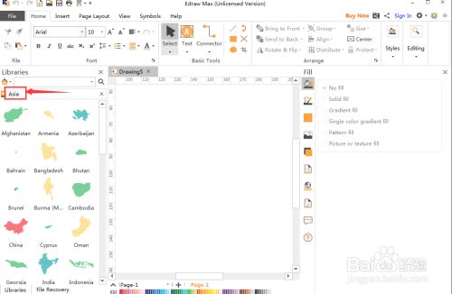 1、打开Edraw Max软件,在地图类别中双击亚洲地图;