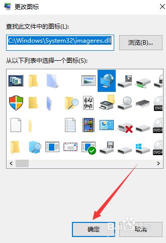 在弹出的窗口,点击本身需要更改的图标,点击确定,即可当作功更改。