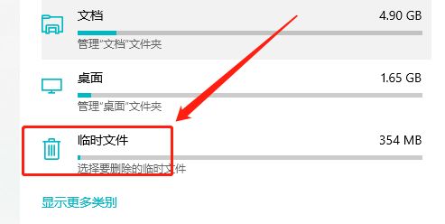 5、在右侧,找到系统清点击“姑且文件”。如图: