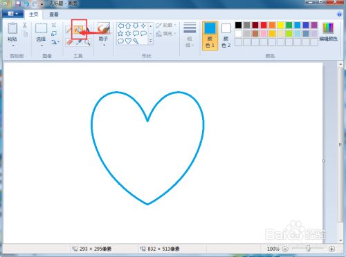 在心形里面点击鼠标左键,给它填充上蓝色;