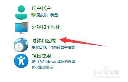 2. 点击“时钟和区域”