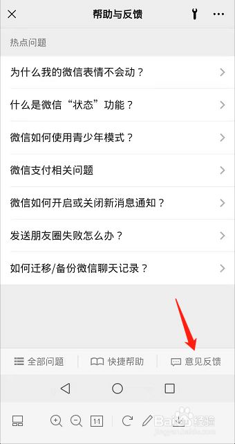 进入【帮忙与反馈】微信设置。