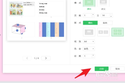 选择纸张后点击份数起头打印。