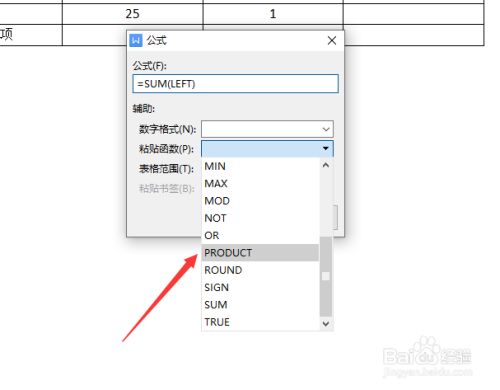 此时,我们点击表格东西列表中的公式按钮,从弹出的公式列表中,我们选择一种函数公式进行粘贴。