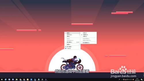 接着在查看选项点击显示桌面图标。