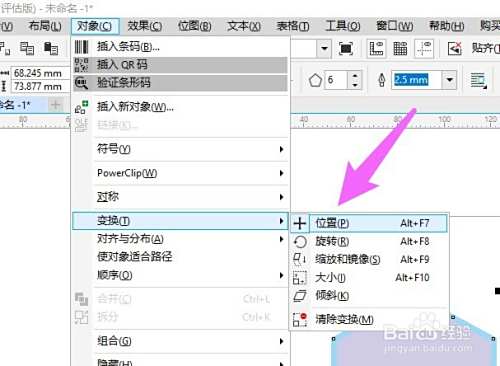 进入本家儿页面中,选中需要复制的对象,点击对象--变换--位置选项。