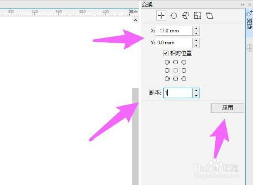 在右侧弹出的对话框中,输入坐标位置,将副本设置为1,点击应用。