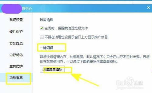 4、随后在右侧看到一键闪释的设置,点击建立桌面图标;