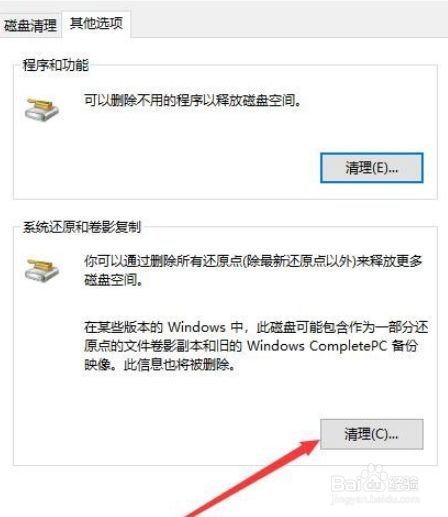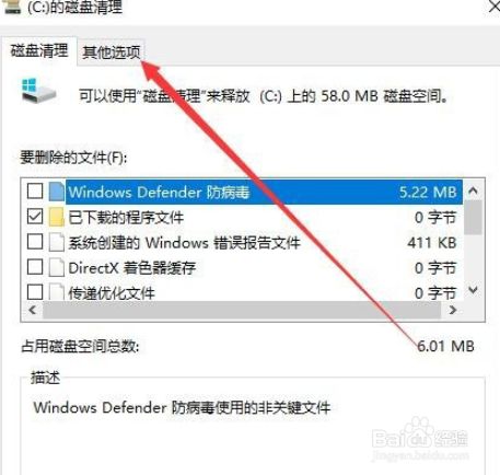 4、接下来在打开的磁盘清理窗口,点击其他选项选项卡。