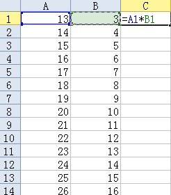 依次表格为例,C1=A1*B1,在“C1”下面第一个单位格里输入“=”。