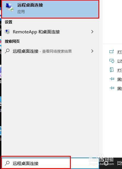 5、在使命栏搜刮“长途桌面毗连”并打开。