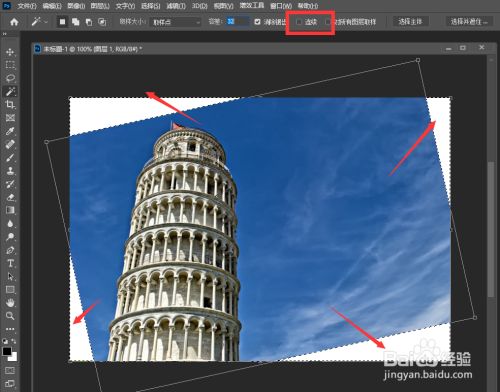接下来我们直接操纵自由变换东西,将倾斜的图片经由过程调整摆放规矩。