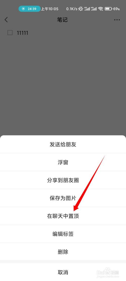 点击在聊天中置顶的选项即可。