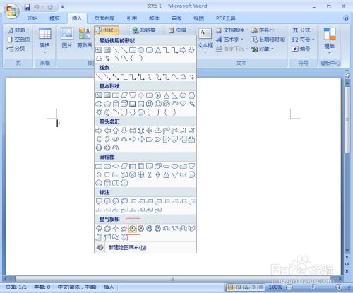 点击插入,选择外形东西中的八角星;