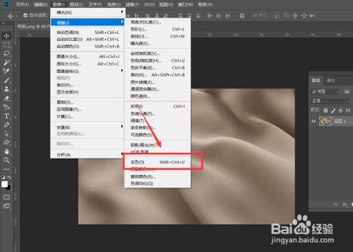 点击菜单栏的【图像】——【调整】——【去色】,将图片去色。