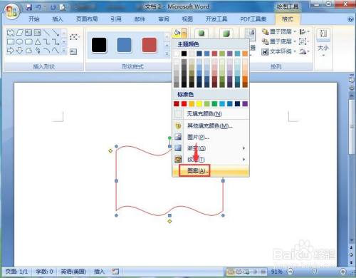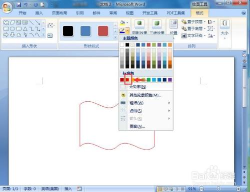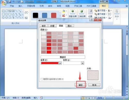 我们就在word中给双波纹填充上了红色横虚线。