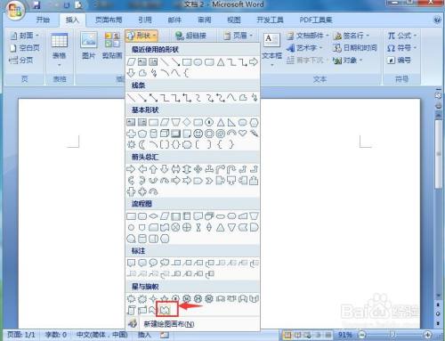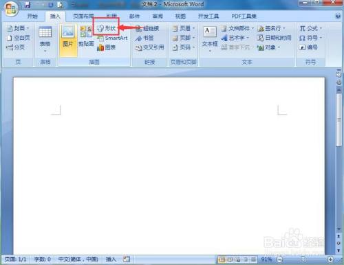 1、打开word2007,点击插入,选择外形东西;