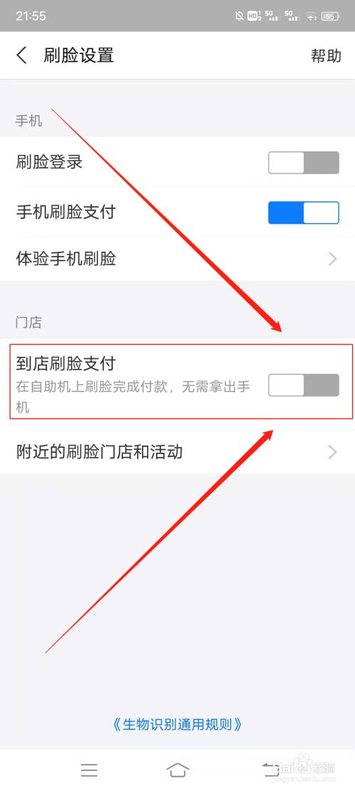 选择打开到店刷脸支付开关按钮。