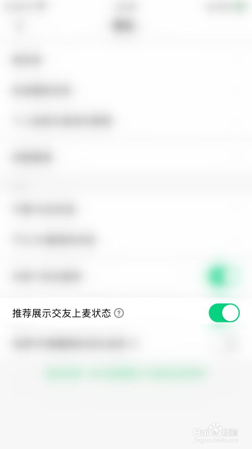 隐私设置界面点击“保举展示结交上麦状况”后面的圆点