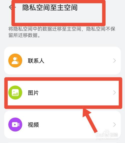 从隐私空间中选择进入隐私空间至本家儿空间,在新页面中点击图片。