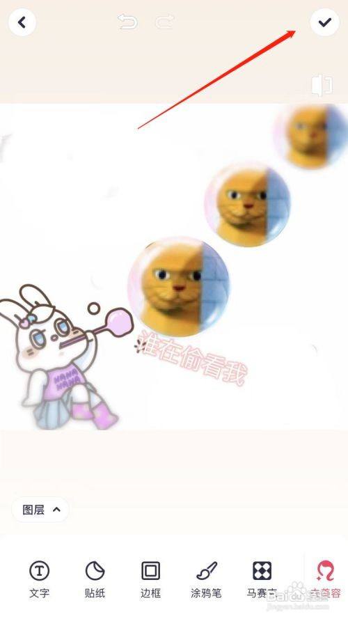 第六步,编纂好文字后,点击图片对勾按钮即可保留。