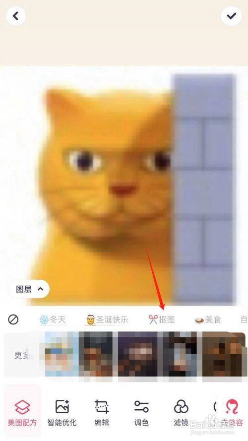 第三步,进入图片美化界面,选择美图配方下的抠图。