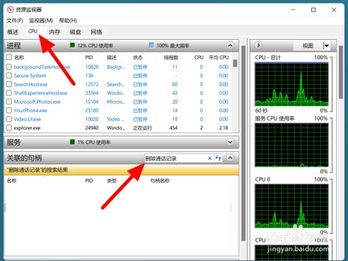 呈现打开的程序,鼠标右击,点击竣事历程。