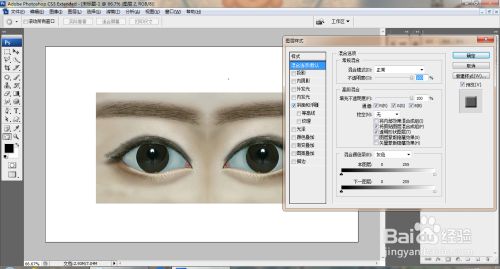 新建图层,选择画笔东西,涂抹眼皮,双击图层,打开图层样式,勾选斜面和浮雕,如图