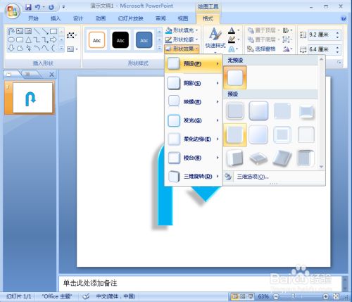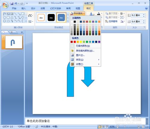 我们就在powerpoint中给拐杖形箭头添加上了蓝色预设结果。
