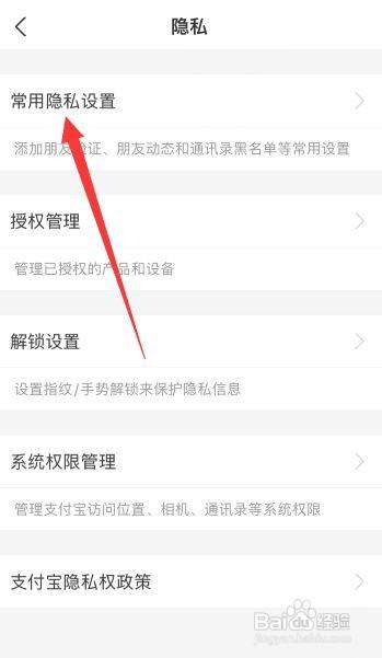 在隐私界面,点击“常用隐私设置”选项。